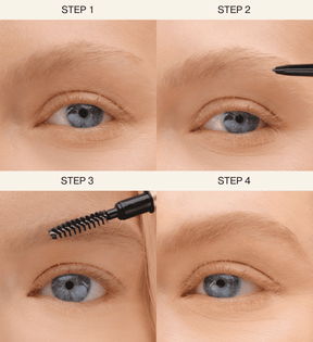 To intensify your brows, gradually build up pigment by layering strokes. Concentrate extra definition at the arch and tail for a more sculpted appearance. Even with multiple passes, the precise, smudge-proof formula ensures the result stays natural and never heavy.To blend and style: